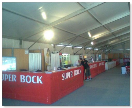 Tenda de Circo de 36m redondo. Côr exterior: Amarelo e Vermelho Côr interior: Azul (dark). Tenda de Circo 26x30 m. Côr exterior: Azul e Branco Côr interior: Azul, Branco e Vermelho.